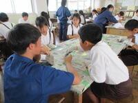 学校応援団の方にゲストティチャーとして来ていただき、切り方や作り方を確かめながら、協力し合って作り上げ、どちらもとてもおいしかったようで、大満足でした。