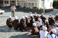 園児たちに説明をする姿は、とてもいいお兄さん、お姉さんでした。園児たちもとても楽しそうで、とてもいい交流ができました。