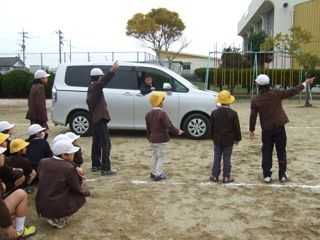 その後、先生たちが不審者に扮して車から声をかけ、適切な動きができるよう訓練を行いました。