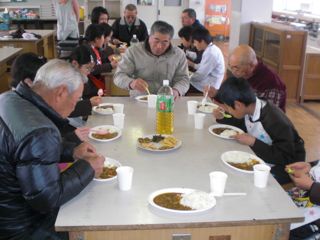 5年生が力を合わせて作ったカレーライスを食べていただき、その後、農業クイズなどの出し物を楽しんでいただきました。