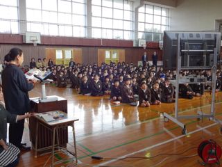 大野小学校では、児童集会で給食委員が発表を行いました。