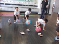 菊池少年自然の家から講師をお招きして、ペタンクとモルックというスポーツにチャレンジしました。