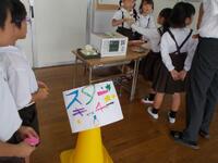 どういうふうに作ったらうまくいくのか、何度もグループで試行錯誤しながら完成させたおもちゃは、どのグループも1年生に大人気でした。たくさんの1年生がお店に来てくれるように、呼び込みもがんばっていました。また、かわいい景品もあり、1年生もとても喜んでいました。