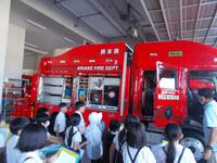 また、11日(金)には、有明消防本部玉名消防署に見学に行き、消防署の役割や消防士の仕事について、そして、ありあけ防災館では、パネル展示や映像、VR体験を通して、防災対策について学びました。消防車の見学や消火器の使い方も教えていただき、充実した学習になったようです。