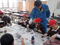 10月31日に、玉名工業高校の機械科の3年生が8名来校し、本校の5年生を対象に「ものづくり教室」を開催してくれました。