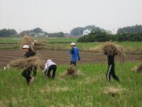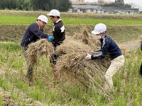 大野支館行事の「どんどや」〈今年度は、令和7年1月12日(日)実施予定〉にむけて、PTA役員の方々や各区長様等のご指導のもと、本校の5・6年生が「わら束ね」を行いました。集めたわらを束にしてくびり、トラックに乗せる作業をしました。束ねたわらは、倉庫でどんどやまで乾燥させるそうです。