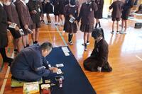11月25日(金)に、今年度も岱明町にお住まいの書道家 德村 剛山先生のご指導のもと、6年生が卒業制作を行いました。