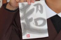 自分で選んだ一文字を、それぞれの思いを込めて書いていました。剛山先生からは、その文字の意味にあった崩し方や筆の運びなど、表現の仕方の工夫を一人一人丁寧に指導していだきました。