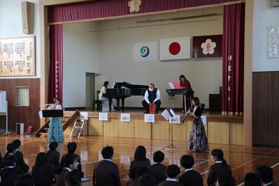 生の演奏を聴き、ほんものの演奏に触れることで、子供たちの表情もぱっと明るくなり、とても素敵な一時を過ごすことができました。