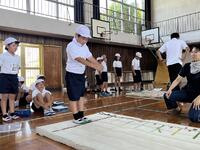 18日(水)には、大野下地区に残る「雨乞い奴踊り」について、保存会の4名の方をゲストティーチャーとしてお招きし、奴踊りの歴史や由来などについて教えていただき、最後には踊り方までご指導いただきました。子供たちもその力強い踊りに魅了され、楽しそうに踊っていました。