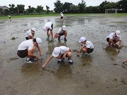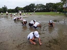 1年生から6年生の全校児童で、10分間黙々と草取りを行いました。