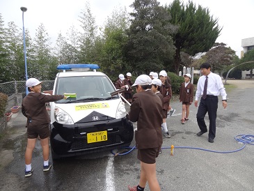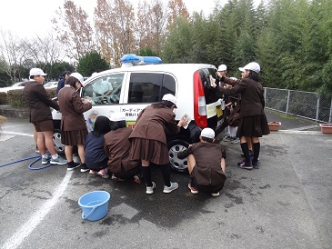 日頃、お世話になっている「青パト」を校長先生の指導のもと6年生が心をこめて清掃しました。