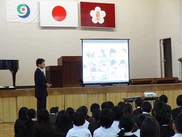 最初に校長先生から「後期前半のふりかえり」「感謝すること」「目標をもつこと」についての話がありました。