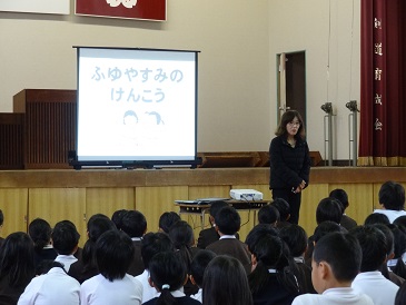 次に、生徒指導担当より「冬休みのくらし」についての話がありました。