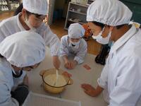 学校応援団の方にゲストティチャーとして来ていただき、切り方や作り方を確かめながら、協力し合って作り上げ、どちらもとてもおいしかったようで、大満足でした。