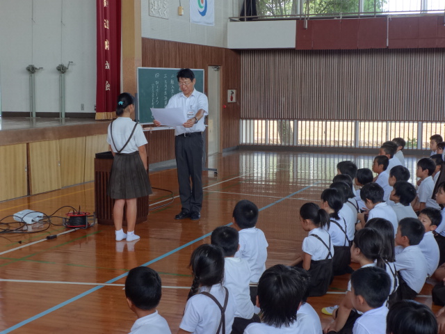 その後、2年生、4年生、5年生の子どもが代表して前期のできたことやがんばったことを発表しました。