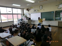 大野小の「太陽っ子人権宣言」を読み上げ、歌を歌いました。