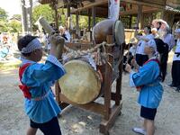7月28日(日)に玉名市の選択無形民俗文化財にもなっている大野下地区の「大野下雨乞い奴踊り」が行われ、数年ぶりに子供たちの雨乞い踊りが奉納されました。地域の児童が20名ほど参加し、太鼓を叩く子や「奴地歌」を歌う子に合わせて、1年から6年生までが、拳を天へ突き上げる力強い踊りを披露してくれました。とても素晴らしかったです。