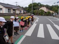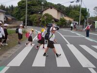 交流会後は、来年度の登校班と一緒に、保護者の方と揃って通学路の確認をしていただきました。