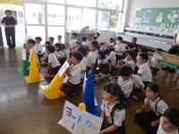 違う学校のお友達とチームをつくり、自己紹介をしあって、ゲームにのぞみました。ゲームの途中では、応援をしたり、一緒に喜んだりして、他の学校の子ともコミュニケーションをとりながら、とても楽しんで取り組んでいました。また、閉会式では、本校の6年生2人が、「終わりの言葉」の役を立派に務めてくれました。