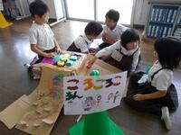 どういうふうに作ったらうまくいくのか、何度もグループで試行錯誤しながら完成させたおもちゃは、どのグループも1年生に大人気でした。たくさんの1年生がお店に来てくれるように、呼び込みもがんばっていました。また、かわいい景品もあり、1年生もとても喜んでいました。