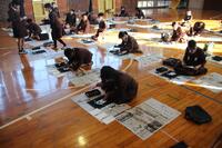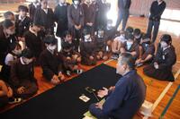 自分で選んだ一文字を、それぞれの思いを込めて書いていました。剛山先生からは、その文字の意味にあった崩し方や筆の運びなど、表現の仕方の工夫を一人一人丁寧に指導していだきました。