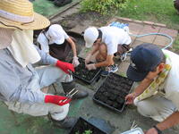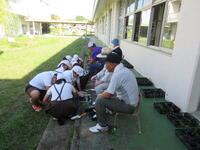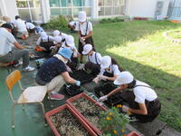 朝夕が涼しくなり、季節が移り変わっているのが肌で感じる今日この頃ですが、花壇の花々も次の季節への準備に入りました。園芸委員会と花ボランティアの方々が協力して、ポット上げを行いました。
