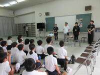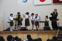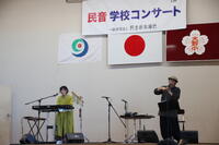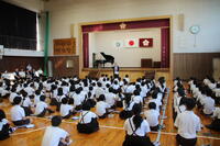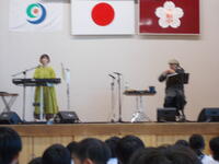 大野小で、学校コンサートを開催しました。今回は、民主音楽協会のご厚意によつて、ビエントの風の音楽コンサートを体育館で実施しました。