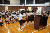終業式では、代表児童が前期を振り返って発表がありました。楽しい思い出がたくさんでき、自分の目標に向かって頑張った前期だったことがうかがえました。