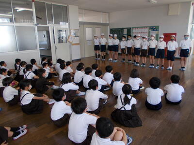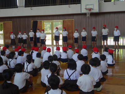 その後、子供たちを代表して、2年、4年、5年の各学級の代表5名が、前期を振り返って頑張ったことや反省したことを発表してくれました。