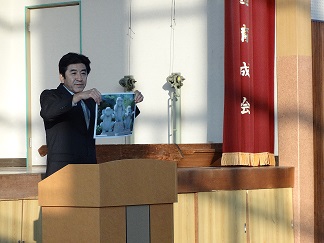「これは、人の欠点や失敗は見ない、聞かない、言わないと言うことです。そうすることでお互いに思いやりの心で仲よく付き合っていきましょう」と話されました。