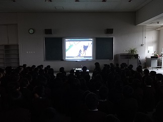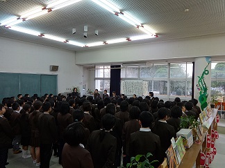 音楽委員会の「みなさんは何の為に生まれてきたか、考えたことがありますか」という語りかけから集会が始まりました。