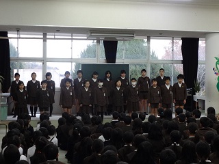 朗読をしました。6年生が声を揃えて唱える「二度とない人生だから」という