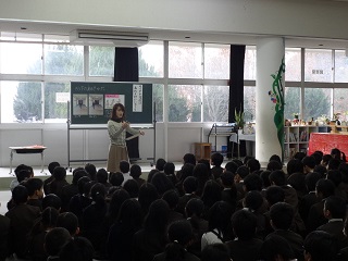 集会では、校長先生より1年間を魚に例えた話がありました。