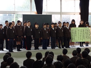 朗読をしました。6年生が声を揃えて唱える「二度とない人生だから」という