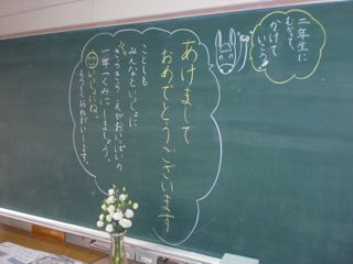 各教室の黒板には、担任の先生からのメッセージが書かれていました。
