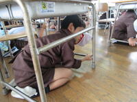地震では、机の下にもぐり、体の安全を確保しました。