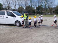 1・2年生が道路の安全な歩き方で、横断歩道や道路の歩き方を学びました。