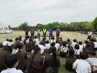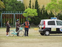 今年度も交通安全協会の方や地域の交通指導員、駐在所の方々を招いて交通教室を実施しました。