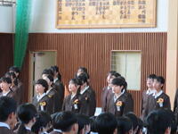 別れの言葉では、卒業生が言葉と歌で、思いを発表し、涙・涙の式となりました。