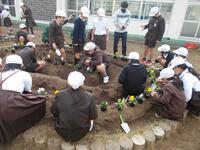 5・6年生が、コメリさんの「緑の資金」事業のご支援でいただいたビオラとパンジーの苗を各学級の花壇に植えました。