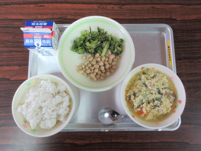 メニューのタイトルは「体ポカポカ給食」で、「キムタクごはん」「ふしそうめん汁」「からあげ」「スタミナサラダ」「デザート(ととやき)」でした。どのメニューも子供たちが大好きなもので、みんな喜んで食べていました。とってもおいしかったです。