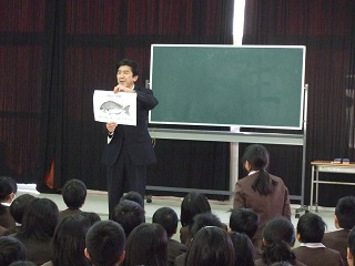 集会では、校長先生より1年間を魚に例えた話がありました。
