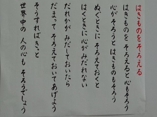 集会の終わりに、「はきものをそろえる」という道元禅師の師を朗読しました。