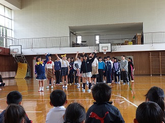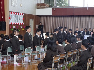 校長先生から各学年に励ましの言葉がかけられ、子どもたちは嬉しそうな表情で話を聞き、元気に返事をしていました。