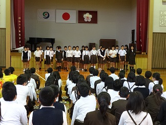 ソロパートやグループによる掛け合いなど工夫してあり、とても元気で威勢のよい声での発表でした。