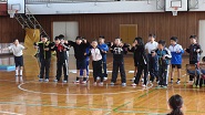5年生は、6年生に相撲を挑み、はやりネタを入れて。