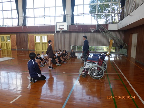 お年寄りになる体験をや車いす体験をして、いろいろな不便さを体感します。