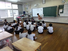 低学年には、1年1組校長先生、1年2組教頭先生、2年教務主任、3年少人数指導担当が入ってTTを行いました。