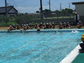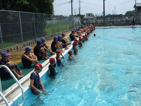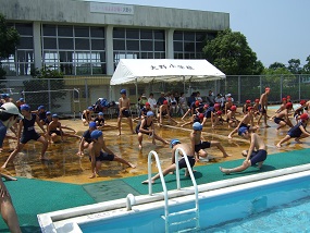 絶好の水泳日和に、大野小のプールに、元気で、一生懸命な1・2年生の姿がありました。